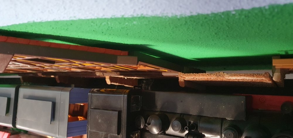 . Ich hab max 5cm Platz für die Kulissen, wegen der Streben nach vorne waren die Häuser aber 6cm tief geworden. Ging ned. Also...