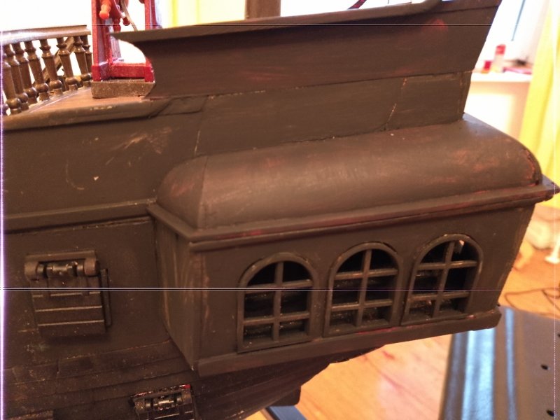 Was mich wundert, ist die Anordnung des Steuerrades zur Seilrolle. Der Steuermann steht doch achtern des Rades. Dann muß er aber immer über die Seile greifen. Oder er steht seitlich und kann das Rad dann ned mit beiden Händen sicher fassen...