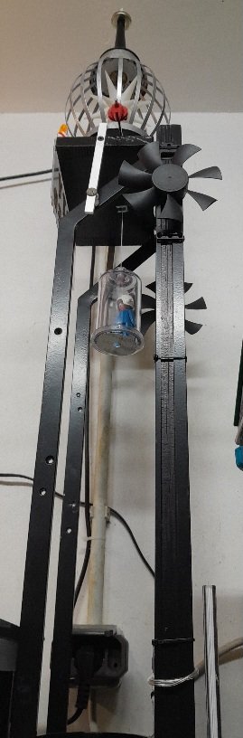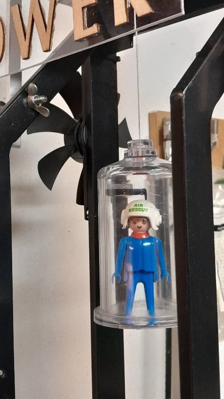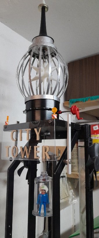Die Gläserne Kabine ist durch eine Kurbel ( Fischer Technik) auf und abfahrbar.