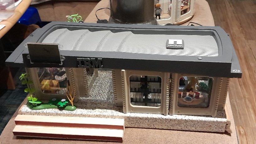 Nur leider passt so etwas im Playmobilmaßstab nicht wirklich (siehe Foto mit den 2 Technikern) - da wären wir grob geschätzt bei ca. 15 m