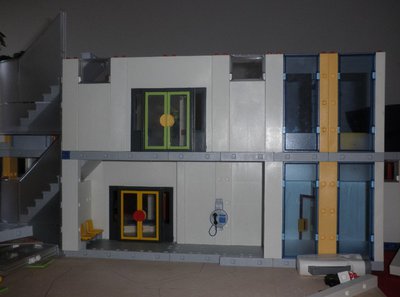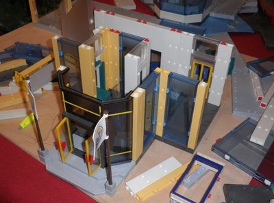 Weiter jetzt mit dem Aufbau des ersten Obergeschoßes. Der Schulungs- und Konferenzraum im Erdgeschoß wird im Laufe der Roman-Handlung nach Eintreffen des Generals übrigens von diesem okkupiert und als "Briefingroom" für Einsatzbesprechungen und Nachbesprechungen (Debriefing) verwendet, denn der Laborkomplex, für dessen Bewachung er zuständig sein wird, dient dann auch als Hauptquartier für seine Truppe und ihn selbst.
