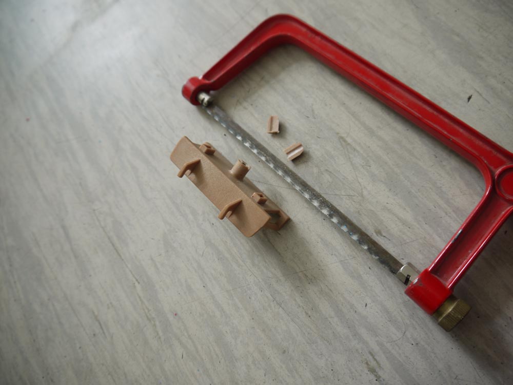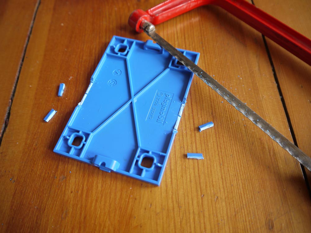 Dann werden die Zaunteile wie bereits beschrieben befestigt und die Platte am Oldtimer- Gehäuse mit den 4 Schrauben befestigt. die Schrauben passen durch die bereits vorhandenen Löcher des Gehäuses.
