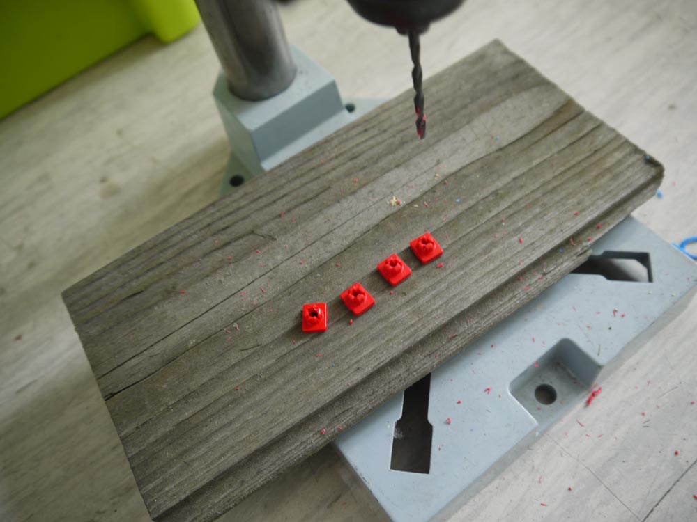 Die X- Verbinder werden mit einem 4er Bohrer aufgebohrt...
