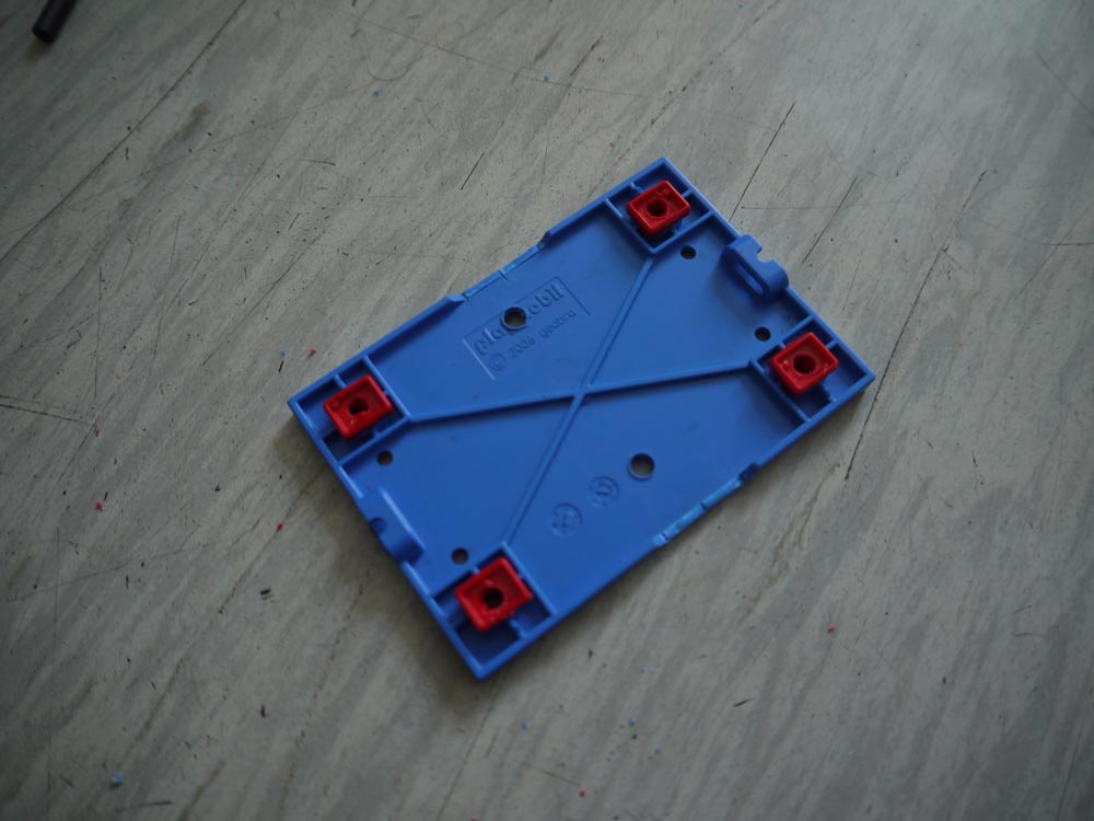 Dann 4 Löcher bohren für die Befestigungsschrauben außen und 2 für die Aufbauten mittig am Rand.