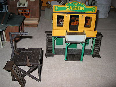 für die Cantina mussten 4 Saloons dran glauben . Zu mindest Teile davon. Insgesamt 4 Häuserfronten, 5 große Bodenplatten, eine Kleine, 2 Rückwände, ein Dachschild vom Saloon und 2 vom Sheriff.