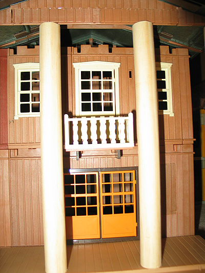 Für die Häuserfronten habe ich mir Schablonen angefertigt und sie dann zurechtgesägt. Danach habe ich die Bögen mit Plastikkleber vervollständigt, verspachtelt und lackiert. Ähnlich wie meiner Häuser auf der ersten Seite.