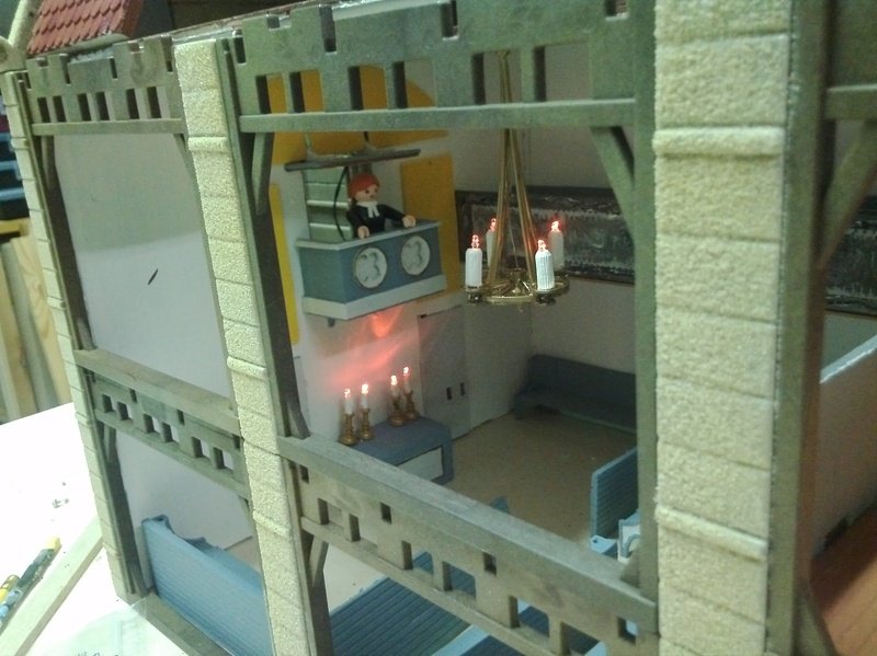 An manchen Stellen scheitere ich einfach an meiner mangelnden Handwerkskunst - die bleibt dummerweise deutlich hinter meiner Kreativität zurück :huh . Oder mir fehlen die Ideen, wie ich es besser hinbekommen könnte - wie z.B. bei den beiden Türen in der Altarwand, die mir überhaupt nicht gefallen, oder der - auch nach dem Anstrich noch geriffelten - Oberfläche der großen Kerze :aeh.