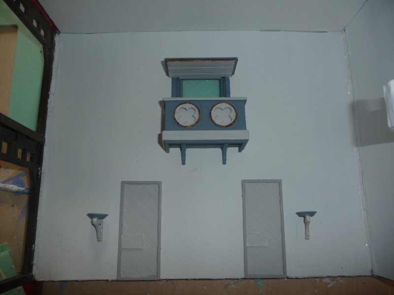 Und weil die Altarwandtüren tatsächlich so aussahen (was nicht zuletzt daran lag, daß ich sie zunächst nur testweise mal hingeklebt und dann irgendwie drumherumgebaut hatte, ohne mir wirklich zu überlegen, wie das zu einem sinnvollen Abschluß kommen könnte),...