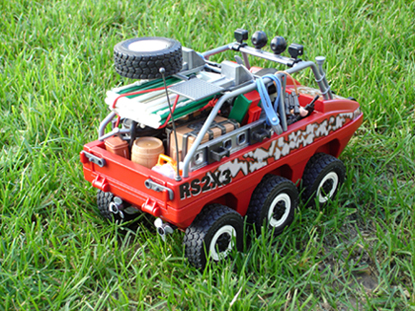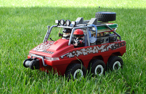 Deshalb einfach die Unimogreifen ran UND fertig. Ich finde, dass er jetzt einem richigen Amphi-Truck noch ähnlicher sieht. Diese zeichnen sich auch durch übergroße Räder aus.