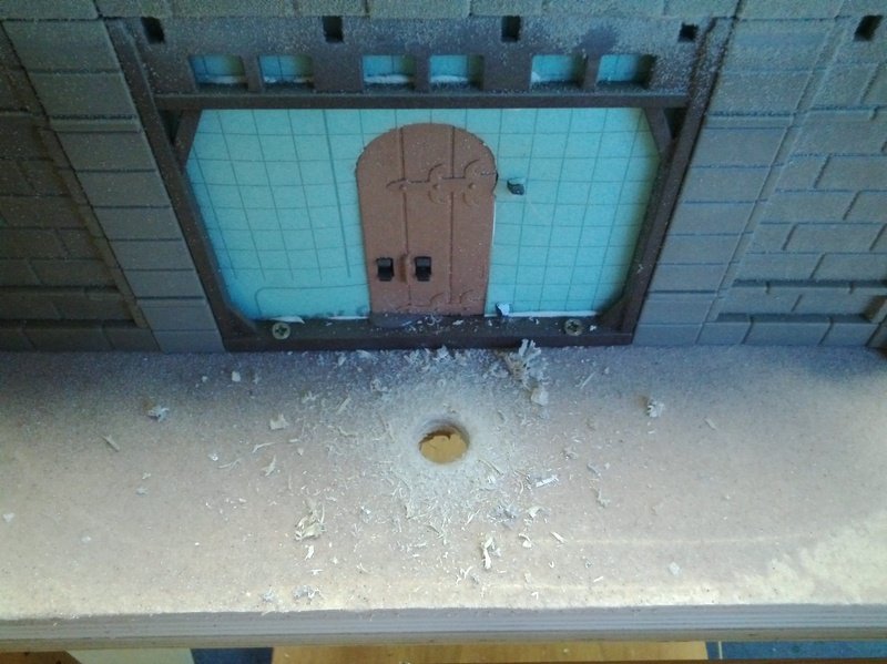 Also schnell den alten Deckenfluter geholt, der für besondere Lichtbedürfnisse im Keller steht, und eingeschaltet. Vorsichtig mit dem Borer das Steckloch wieder freigelegt, Kerze rein...