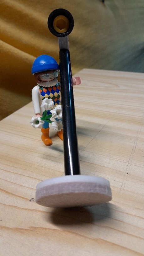 Dazu wird der Klöppel oder der Schlaghammer mit einer Manschette aus Leder oder Filz umhüllt und festgezurrt.