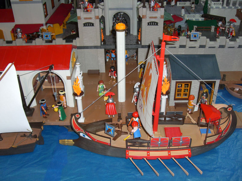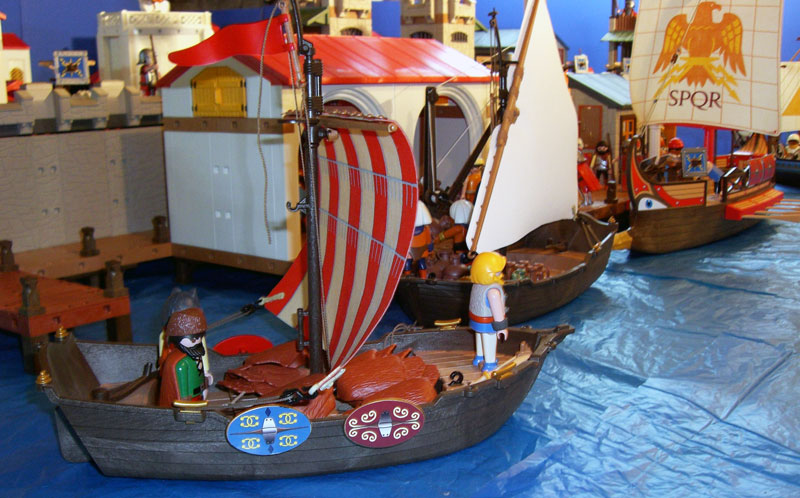 @ Daniela: Der rote Baldachin ist von der römischen Galeere und der weiße ist die ägyptische Variante vom Nilschiff. Wobei sich der weiße eigentlich besser für einen Verkaufstand eignet, der rote ist fast ein bisschen mickrig.
