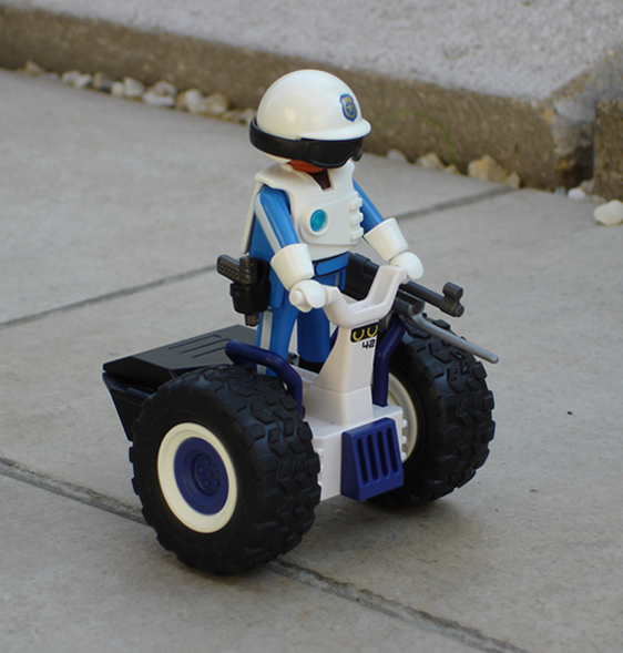 Hier seht ihr Offizer John Poncho mit seinem Segway auf Patroullienfahrt: