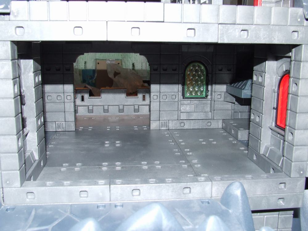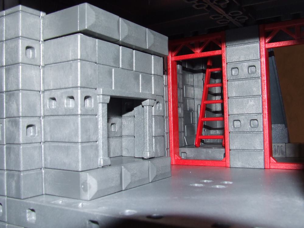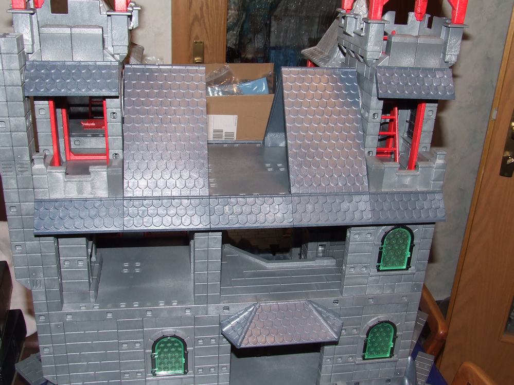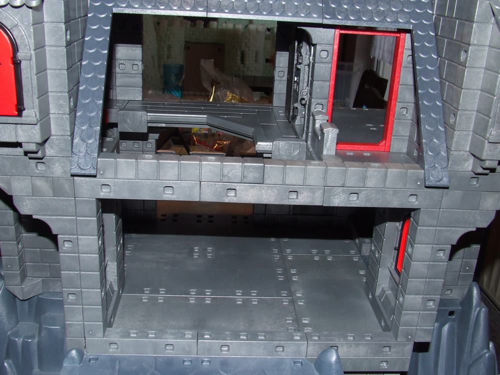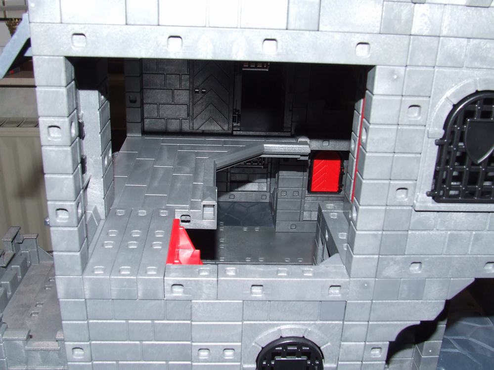 Der linke Durchgang der Kemenate (mit Leiter) führt in den Wehrturm. Der rechte Durchgang zu der kleinen Ecke der Empore über dem Rittersaal mit der einzelnen abgesägten Zinne. Zumindest beim rechten Durchgang hatte ich eine Tür angedacht, aber dann leidet die Bespielbarkeit doch extrem.