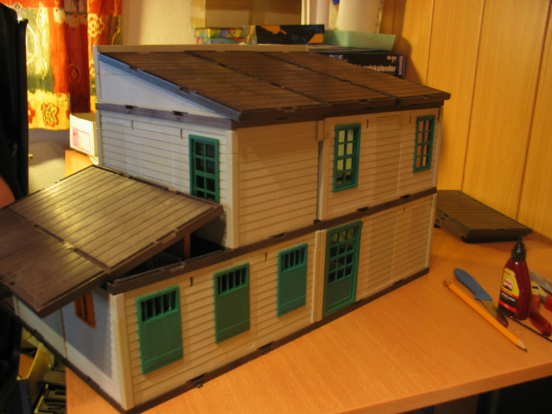Nein für die Gebäude habe ich mir einen neuen Klappmechanismus überlegt. Alle Wände sind rauszunehmen. Gerade beim Dach hab ich mir ein Stecksystem gebastelt damit man von oben reinschaun kann..... Dadurch das die Gebäude alle demontierbar sind versuche ich ja die originale Playmofunktionalität beizubehalten an der Mittelwand kannst du sehen wie ich mir das gedacht habe......