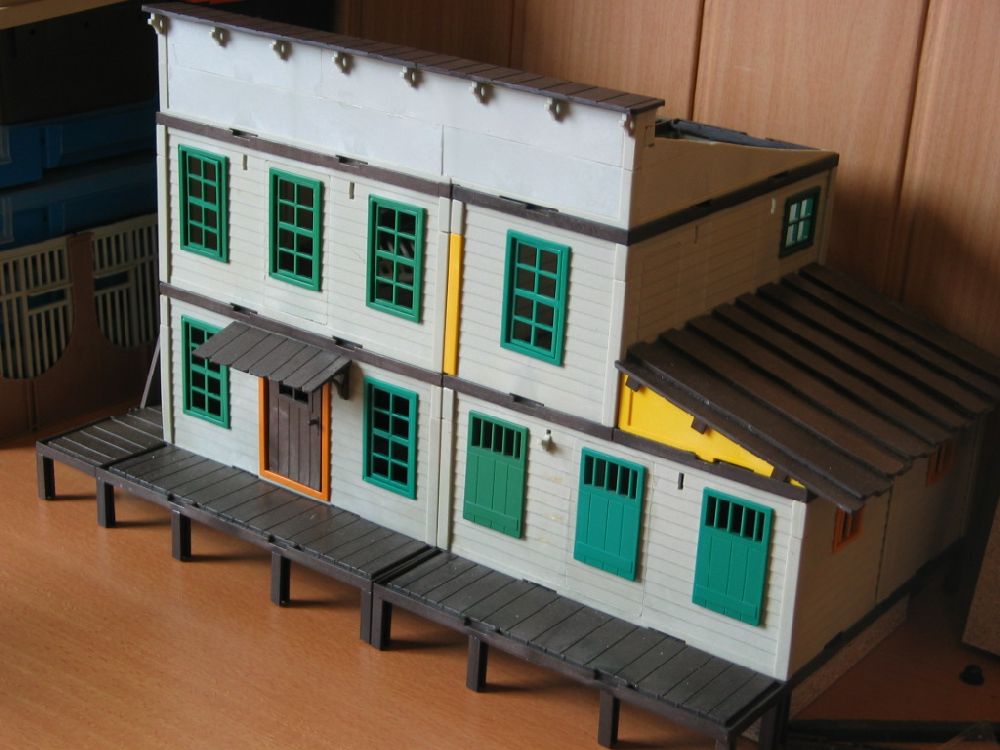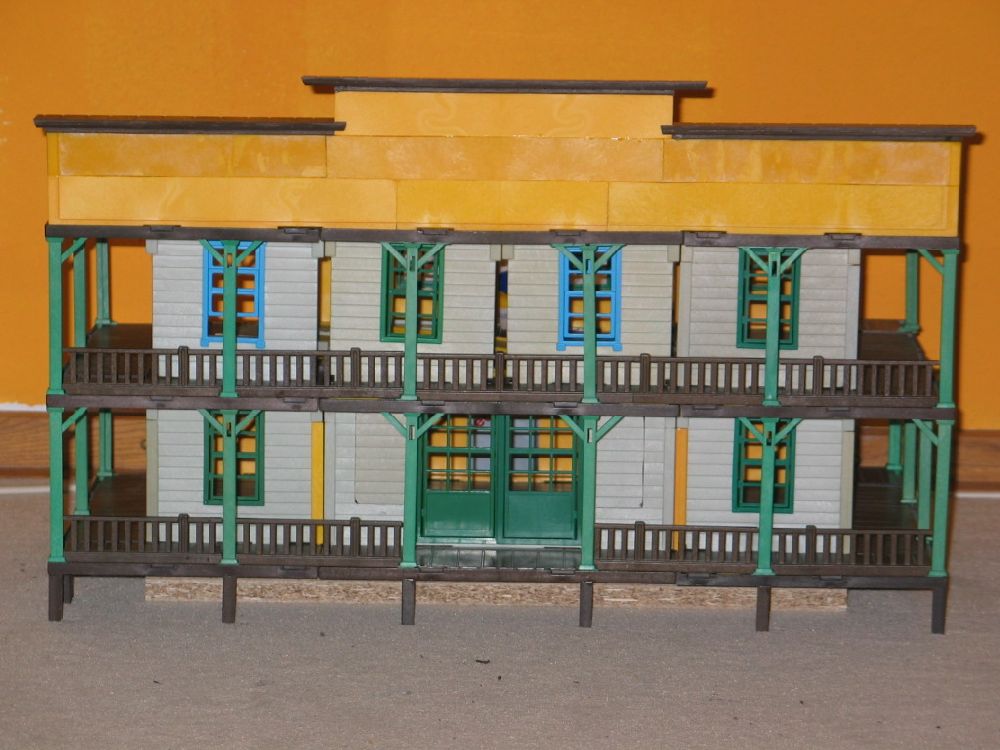 Allein der Sheriff verschluckte 19 große Bodenplatten und 7 Frontwände, über 20 Seitenwände und spezielle Bauteile von anderen Gebäuden. Die Bilder der anderen Gebäude werde ich hier erst nach der Playmoconvention online setzen. Bis dahin werde ich mich nur auf den Sheriff und die Bank beschränken da dies die einfachsten Gebäude sind.