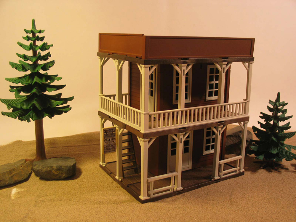 Der Sheriff hat oben die Gefängniszellen und unten den Bürobereich. Das Texasgebäude benutzte ich als Waffengeschäft und oben als Wohnbereich