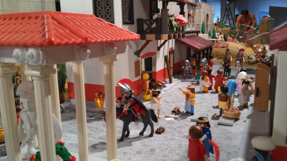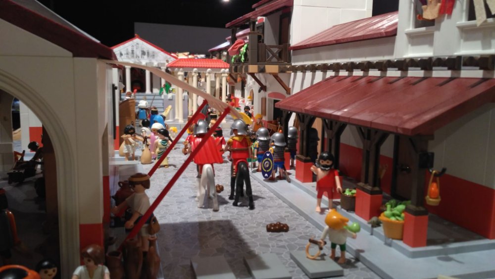 Für die römischen Geländer verwendete Blader das Original aus dem Playmobil-Puppenhaus, entfernte das Innere und platzierte zwei Fliesenabstandshalter auf jeder Schiene. Oder das ist mein Eindruck.