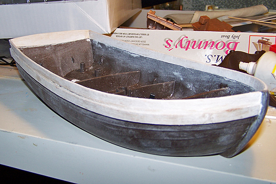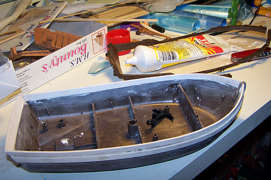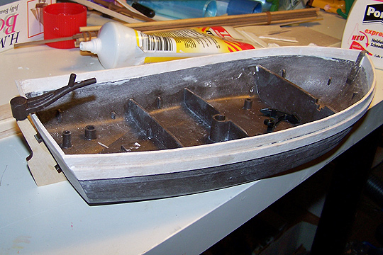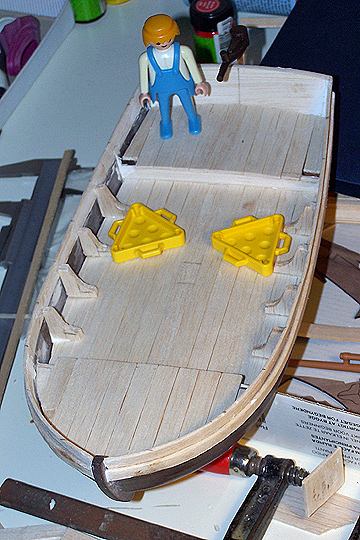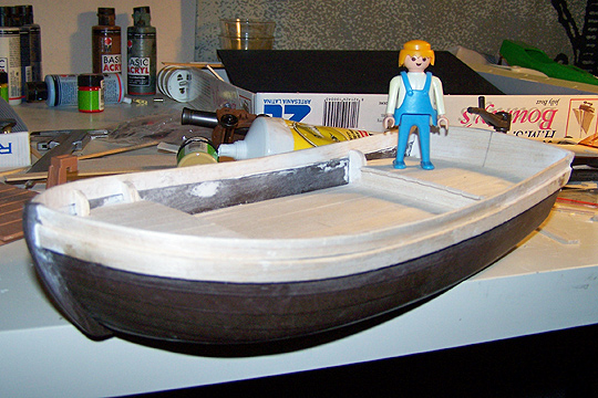 Mich hat damals der Heckaufbau gestört, wittlerweile wurden die Holzstäbe durch solche aus Kunststoff ersetzt und statt eines Baumwolltuches hat das Bötchen ein Holzdach.