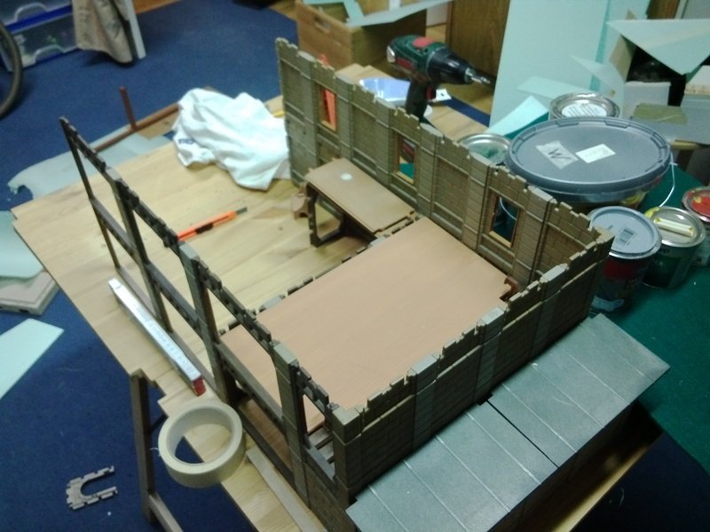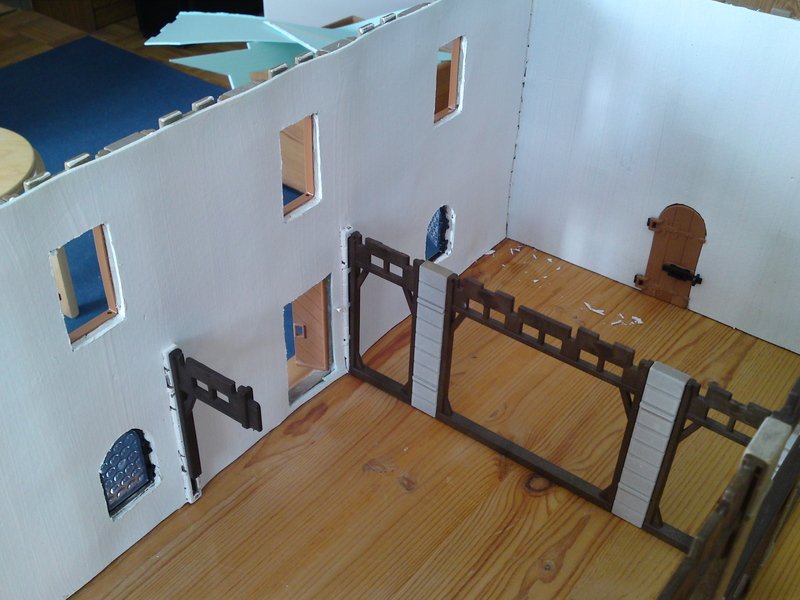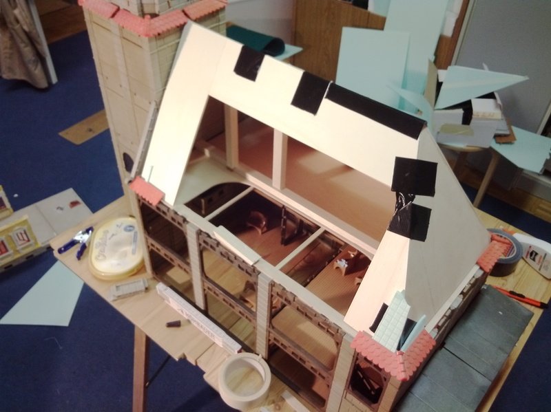 Baufortschritt: Auf der Rückseite wurde der Dachrahmen begonnen. Hier wird das Dach allerdings in der Mitte offen bleiben, um einen besseren Einblick zu ermöglichen. Mal sehen, ob ich nachher Bilder dazu einstellen werden können.