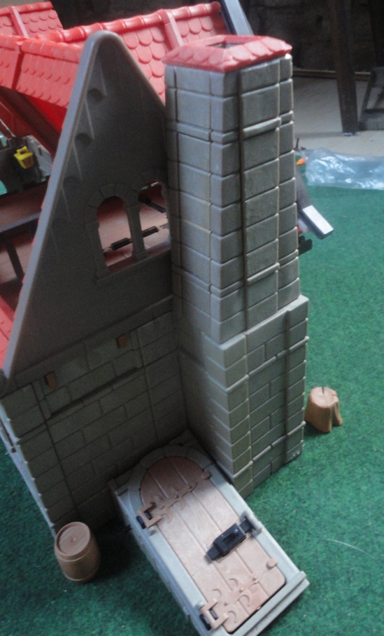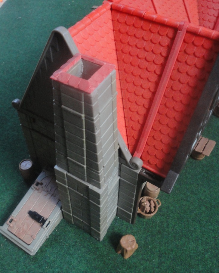 DEnn ich habe dem Haus noch einen Kamin verpasst. DEr ist recht massiv geworden, aber irgendwie muss der Rauch auch abziehen.