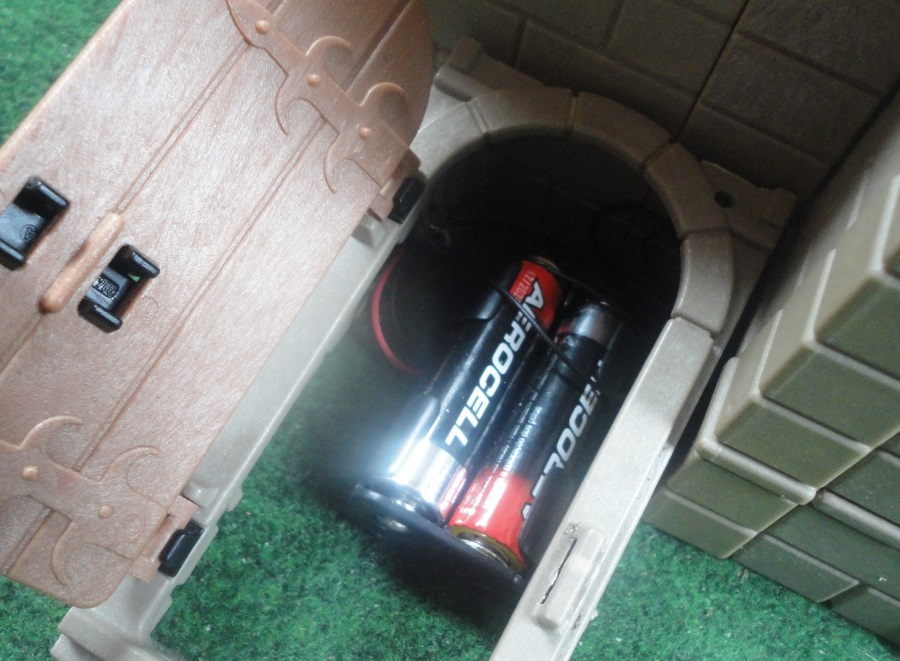 In diesem Eingang habe ich dann sinnvollerweise die Batterien für das Kaminfeuer gepackt. Inklusive Schalter