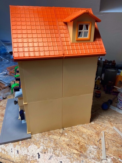 Die Häuser haben eine nette Größe, es ist der Oberhammer, was du gebaut hast, Häuser, Figuren und Fahrzeuge, alles Top.
