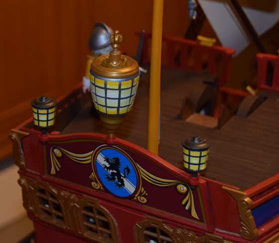 Es sollte ein Spielzeug sein, und ich glaube, dass der Kleber das Gewicht nicht halten würde. Die Schlachtschiffe waren wirklich riesig. Es ging auch wirklich viel darum, mit einer Breitseite alles zu vernichten. Die Schiffswände waren aber so dick, dass die Geschosse eigentlich gar nicht durchkamen. Wollte man das realistisch abbilden, dann wäre schon mal das mit Playmobil nicht möglich.