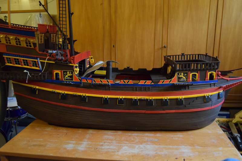 Naja ich verstehe natürlich das Problem mit der Größe. Was ich bei dir auch gut finde ist das du nicht unnötig viele Geschütze hast. Ich habe beim suchen ein englisches Schiff von Marco Snejder gefunden. Allein wegen der Takelage gefällt mir das super. Natürlich ist auch da die kleine Delle im Rumpf aber sowas stört mich z. B. kaum. Viel mehr fällt mir auf das die Figuren offensichtlich auch im Playmooriginal viel zu groß für die Reeling sind. Da wirkt ein Schiff schnell überfüllt. Da ich mich niemals ( höchstwarscheinlich ) an ein solchen Projekt trauen werde backe ich aber kleine Brötchen.