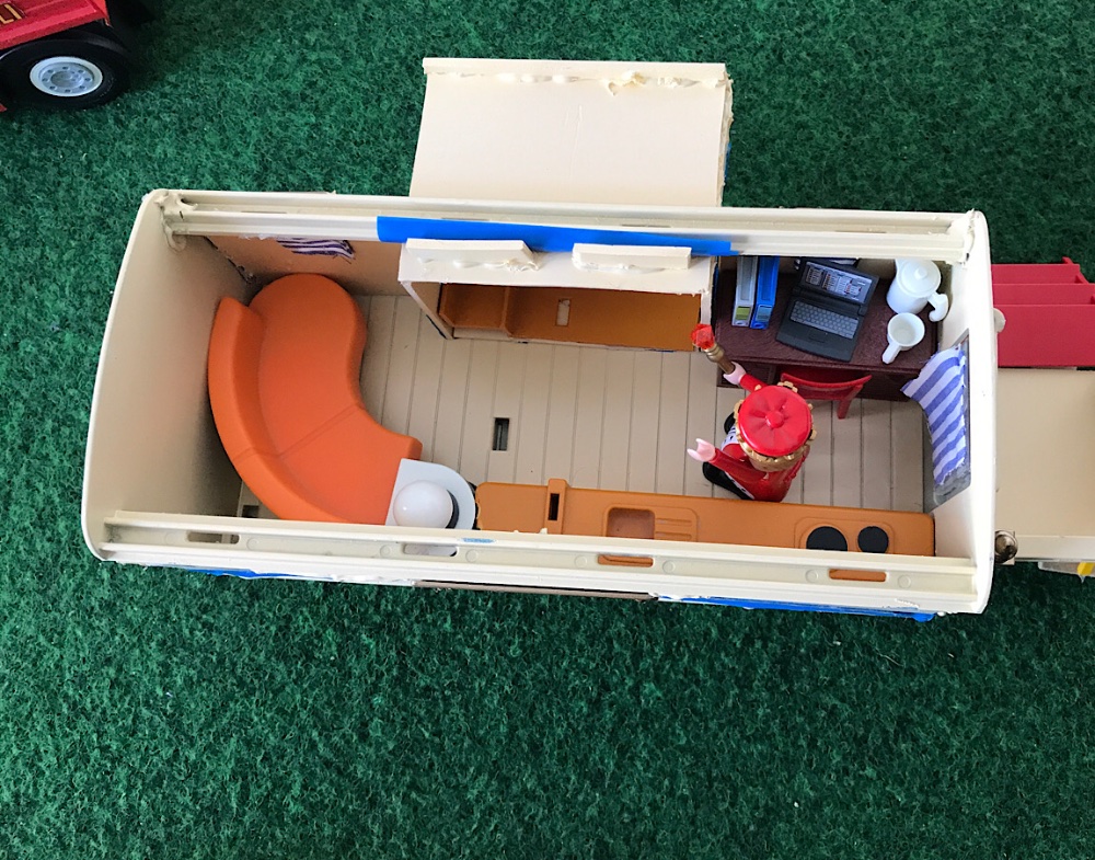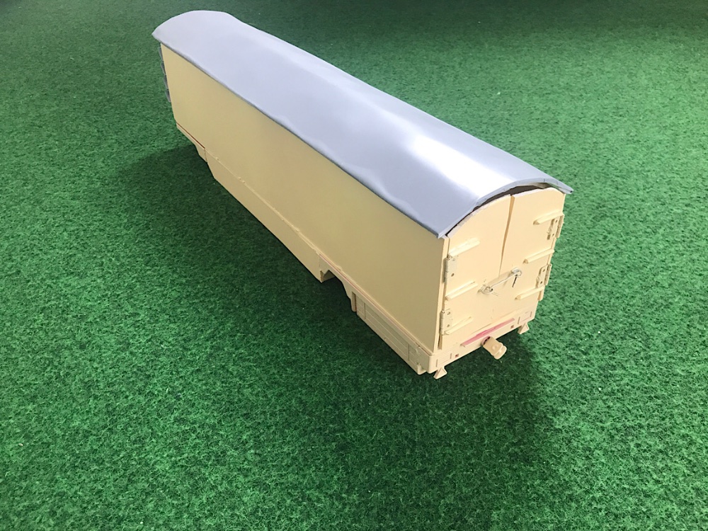 mit der gleichen selbstklebenden Folie beklebt worden, wie das Dach vom Packwagen.