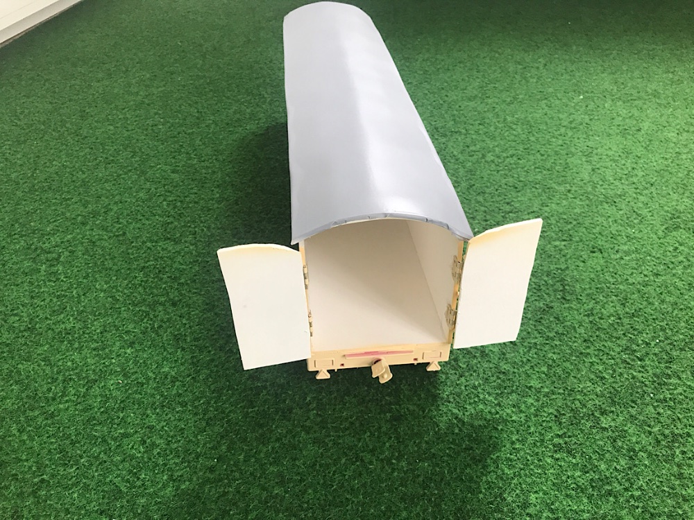 Erstmal zur Frage: Ich habe einen Föhn genommen und das Dach sehr stark gebogen, dann habe ich es genau so gebogen wie ich es wollte, zuletzt habe ich eine selbstklebende Folie über alles gemacht damit man die schlechten Stellen auf dem Dach nicht sieht.