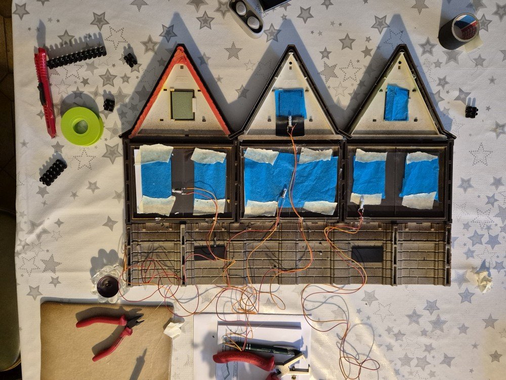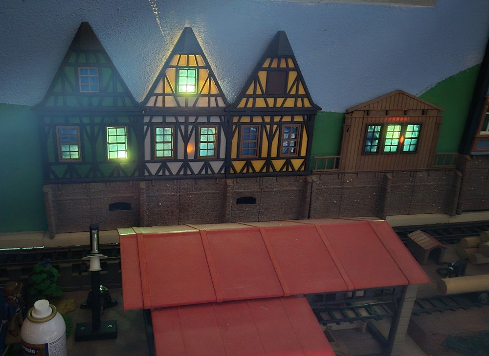...leuchten jetzt. In echt ist's ned ganz so grell, aber die hellen Punkte hinter den Lampen sieht man tatsächlich, da muß ich nochmal ran.