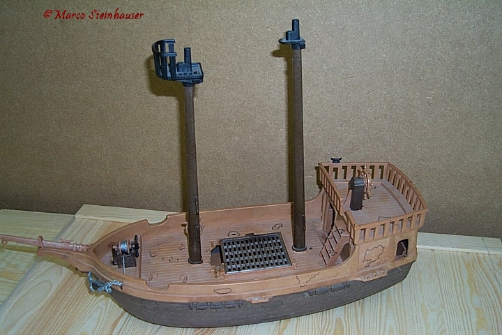 Vom Piratenschiff das ich als Kind mit 10 Jahren bekommen habe, zum RC-Schiff das ich als Jugendlicher umgebaut habe, dann wieder zum Piratenschiff das ich mir vor 5 oder 6 Jahren mit Ersatzteilen wieder zusammen gestellt habe und nun wird es zum Geisterschiff umgewandelt.