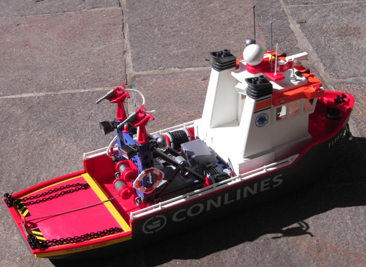 Mit dem Lackieren habe ich nicht so gute Erfahrungen, meine Bauten sind immer so, dass meine Kinder auch damit spielen können, und ich habe keine so feste Lackierung gefunden, die das aushält (kratz- und abriebfest). Ich lasse ihn daher vorerst als Schlepper für die Rederei fahren.
