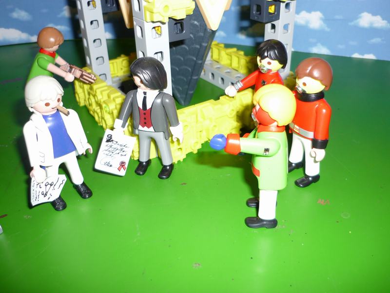 Wer mein letztes Projekt mit der New Hope kennt, weiß dass ich eine Art Space Opera zum Thema Battlestar Galactica zum Thema habe. Da die New Hope auf einem Planeten irigendwo da draußen innerhalb des Gebiets der letzten Cylonenangriffs ohne jeglichen Schutz liegt, hat die Stationsleitung die Installation von Abwehrsatelliten in Auftrag gegeben. Wir sind hier zu Gast in einer der Werften der New Hope und betrachten den Bau eines der Sperrsatelliten. Sogar Graf Baltar und der Flottenarzt sind kurz zu Besuch um die Installation zu überwachen. Blöd nur, dass die gar nicht hier sein können, weil sie ja mit der Galactica weit draußen auf dem Weg zur letzten Zuflucht sind.