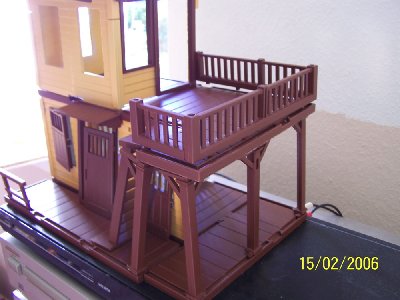 Hab es so gebaut(bin dabei)das es wie die anderen Westenhäuser von Playmobil auch zerlegt werden kann und auch hinten bewegliche Türen hat!
