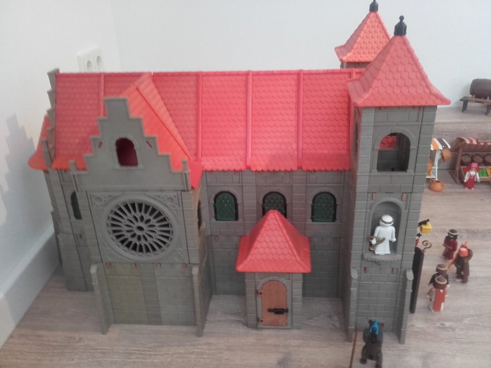 Die Kirche ist dir prima gelungen. Von der Proportion her zum Rest deiner Stadt passt die Dimension deiner Kirche meiner Meinung nach sehr gut. Nicht zu gross, aber auch nicht zu klein. Das Gotteshaus soll die restlichen Gebäude ja etwas überragen und das Stadtbild prägen. Das ist dir sehr gut gelungen. Auch die Playmoebius-Teile hast du toll integriert.
