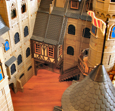 Die Proportionen sind hinreissend. Mit den doppelt hohen Aussenmauern wirkt diese noch relativ kompakte Burg sehr realistisch. Aus der Froschperspektive heraus fuehlt man sich wie ein Wanderer, der an einer echten Burg ankommt. Ganz toll auch die abwechslungsreichen Dachkonstruktionen, z.B. die angelehnten Daecher und die nur ein Feld breiten Daecher. Sieht sehr echt aus.