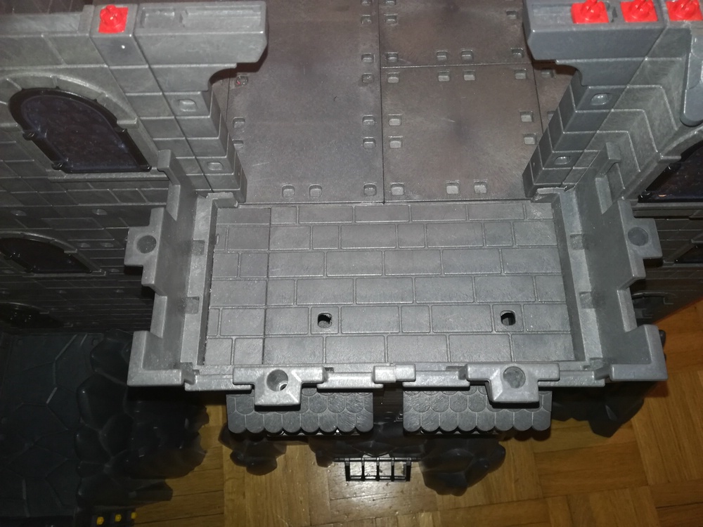 Die Balkone sind aus den Eckplatten mit Zinnen gemacht,hier noch mal ein Foto davon.Der Boden ist aus der Rückwand des Fallgitters gesägt und verklebt.