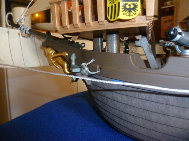 Eine helle Mastspitze muss noch gegen eine schwarze ausgetauscht werden, es fehlt noch etwas Kleinkram und 2 Soldaten und der erste und zweite Offizier, ansonsten fertig.