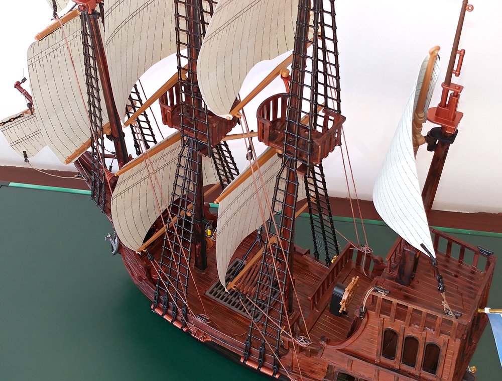 Schön auch die Farbgebung, wobei ich Olki recht gebe: eine goldene, elfenbeinfarbene oder hellbraune Gallionsfigur würde dieselbe besser zur Geltung kommen.