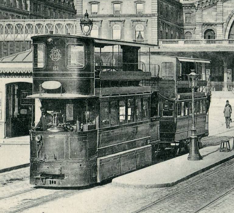 Druckluftstraßenbahn System Mékarski in Paris, um 1900