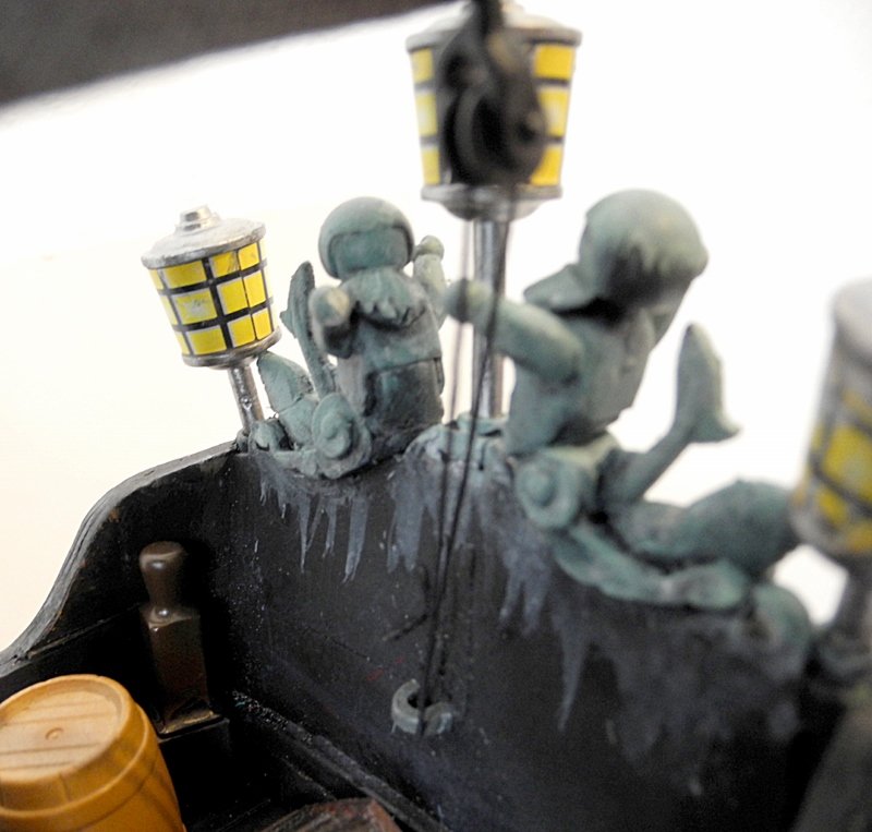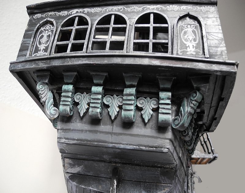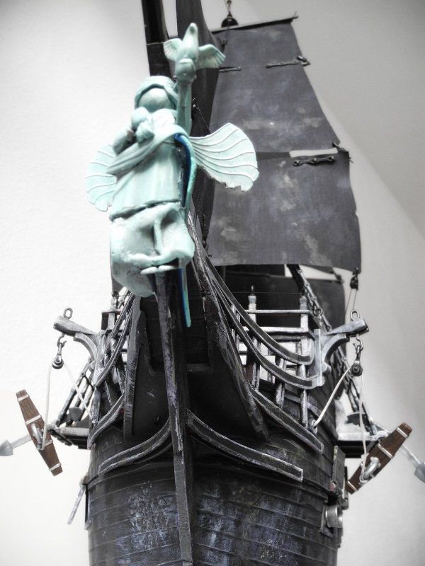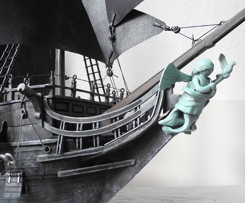 Von Juni bis November 2023 wurde gefeilt, gesägt, geklebt, gebohrt und bemalt. Das Schiff sollte bespielbar, aber nicht schwimmtauglich sein. Besonders wichtig war das Gefängnis an Bord, weil das im Film vorkommt.