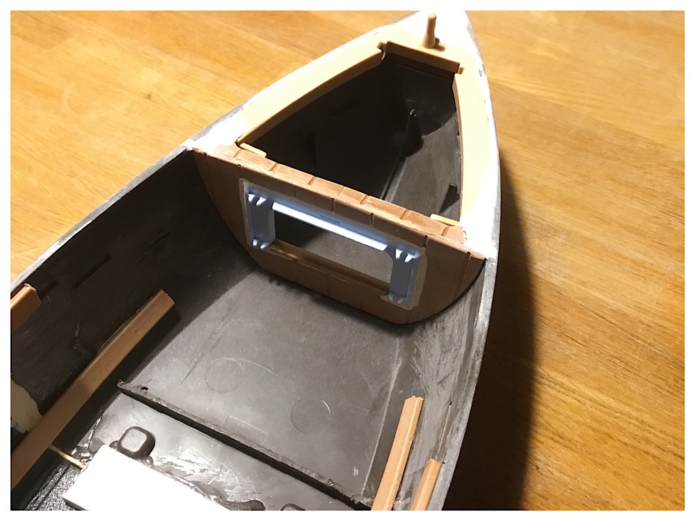 Den Innenraum des Schiffes habe ich mit Planken versehen. Da mussten einige Leiter ihr Leben lassen…