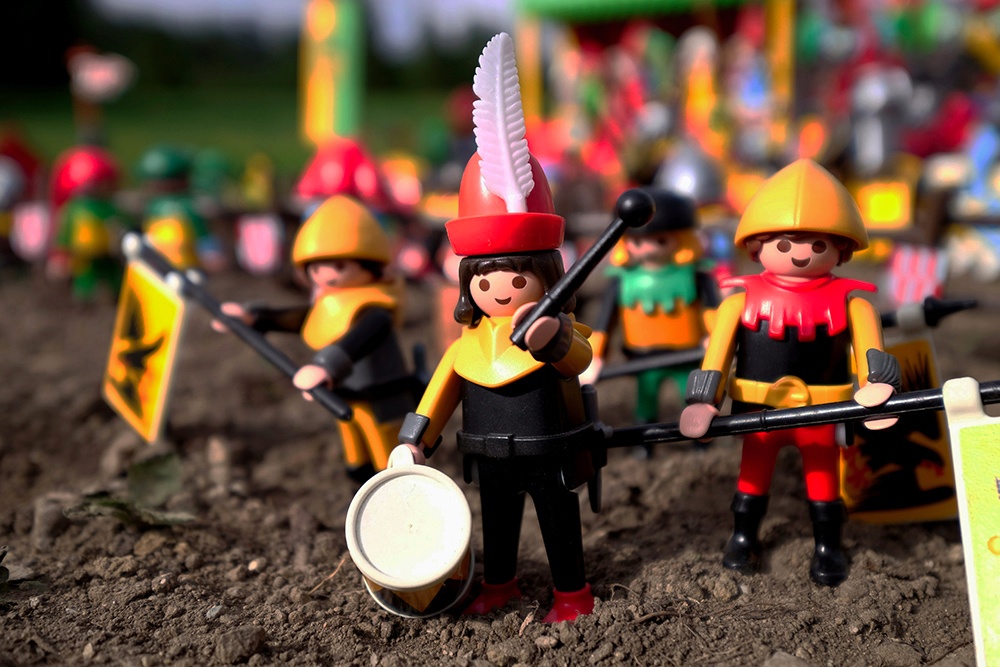 Sorgenkind Nummer 2 war das Wetter - es war einfach zu schön! Jeden Tag Sonnenschein und 30°C, das ist nicht nur körperlich anstrengend, bei solch einem Licht kann man auch schlicht keine guten Fotos machen: Das Playmobil glänzt und reflektiert, überall harte Schatten.