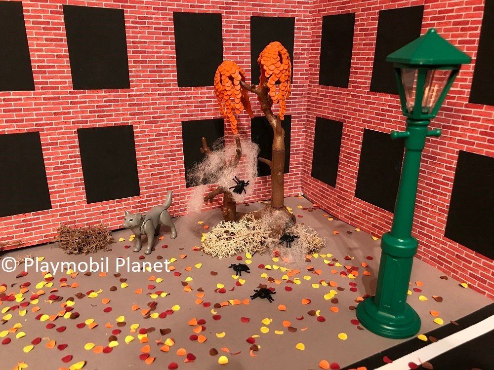 Oh Mann, coole Idee. Besonders das Laub wirkt sehr gut. Ich dachte erst, die Stadtbewohner haben Hallowenndekorationen aufgestellt und man findet nun Kürbisse, Skelette uns Laternen vor den Häusern.