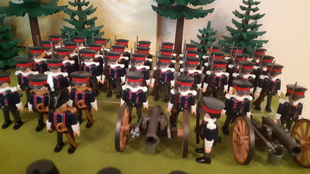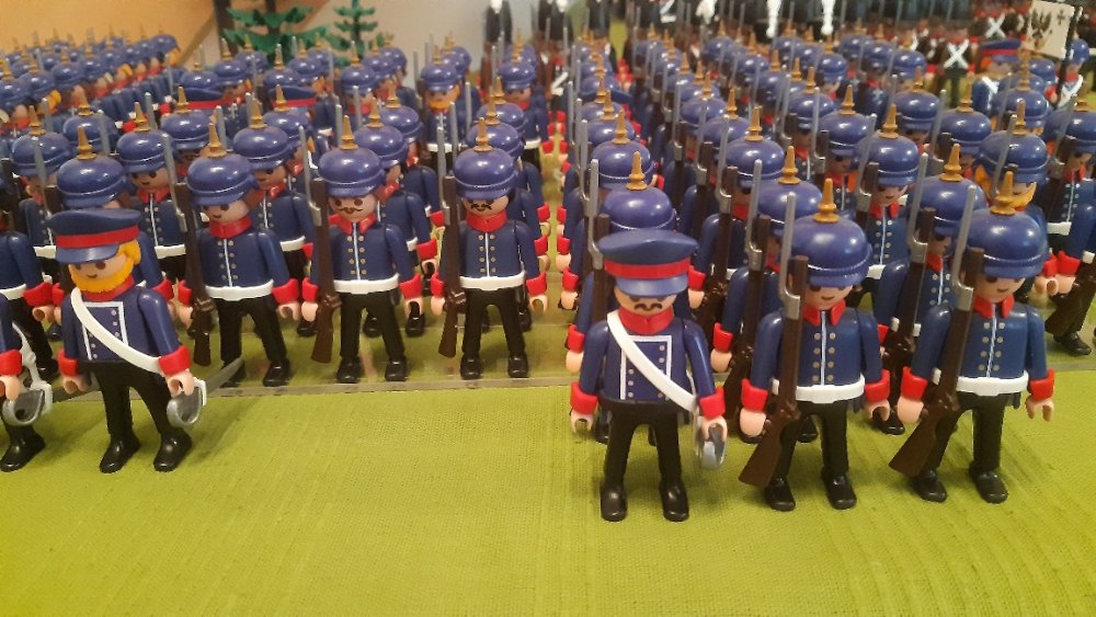 finde deine Umsetzung "modernerer" Preußen sehr gelungen. Vor allem passende Kopfbedeckungen im vorhandenen Playmobil- Portfolio zu finden, ist ja nicht ganz einfach. Baue gerade selbst an modernen Truppen um 1900.