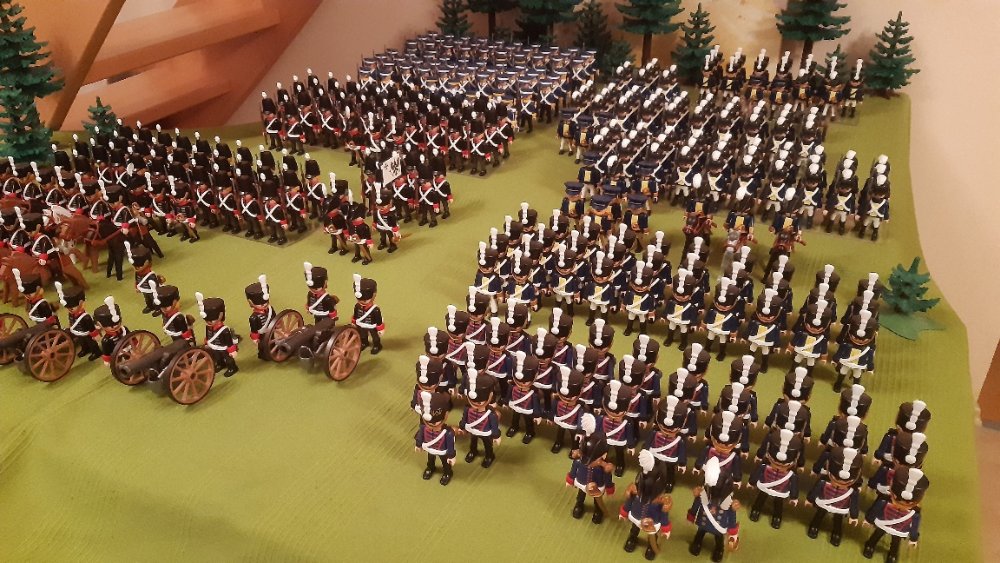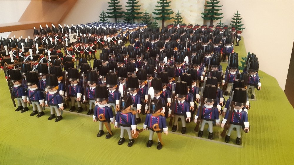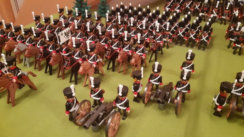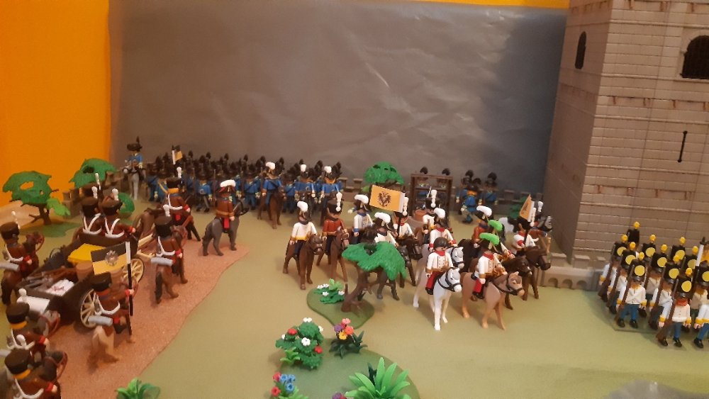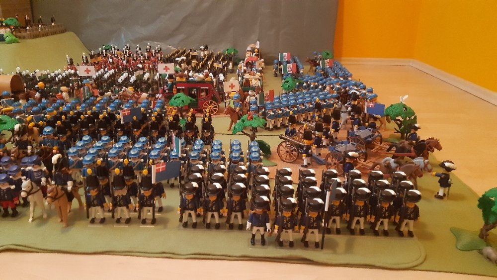 Kavallerie links und 2 Kavallerie Einheiten auf der rechten, leider ohne Pferde. Dahinter Einheiten aus Württemberg.
