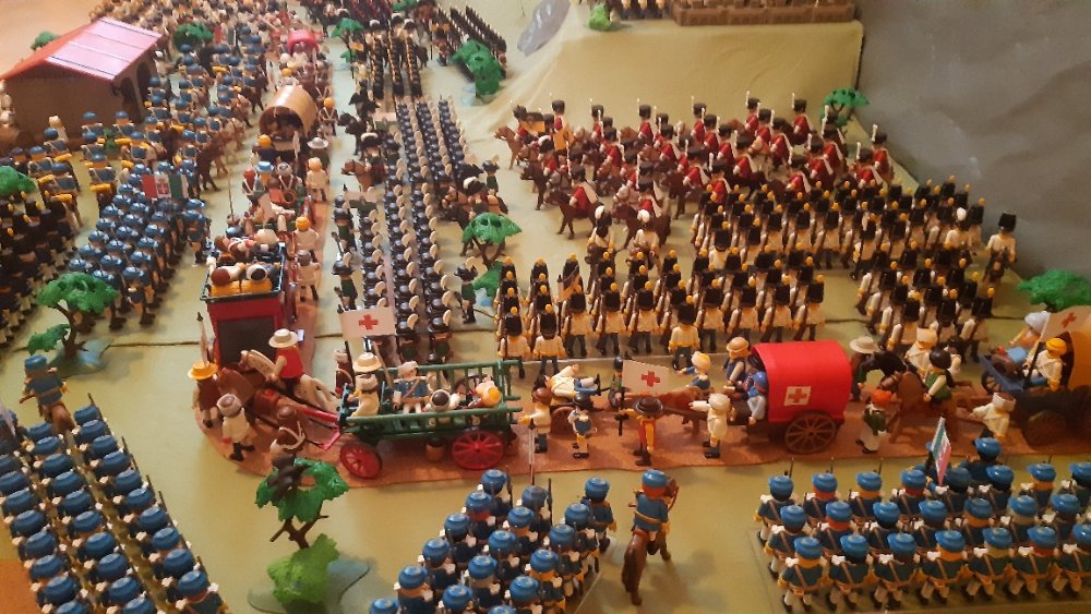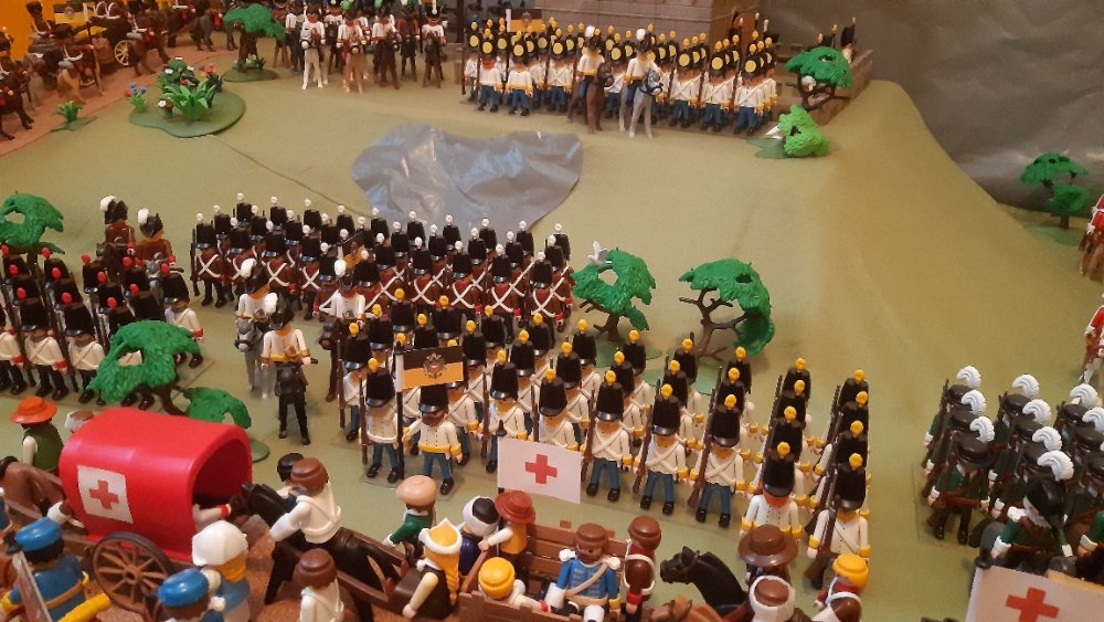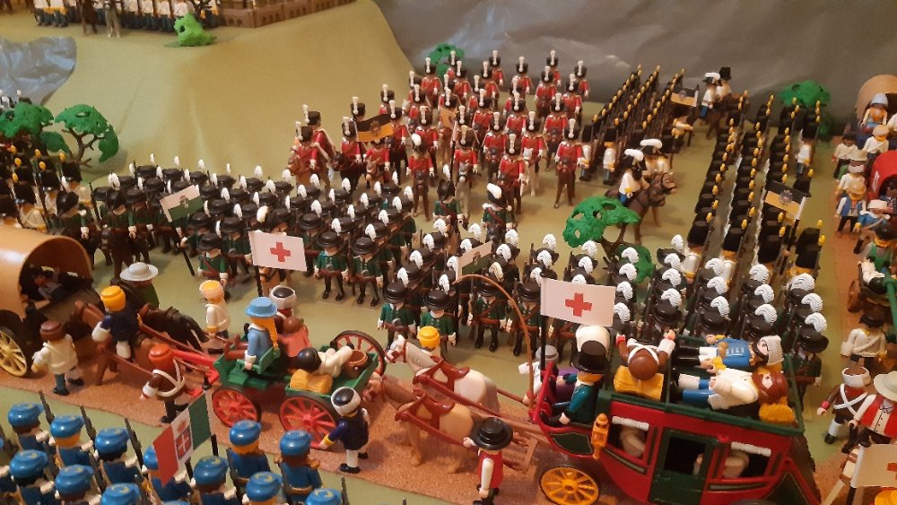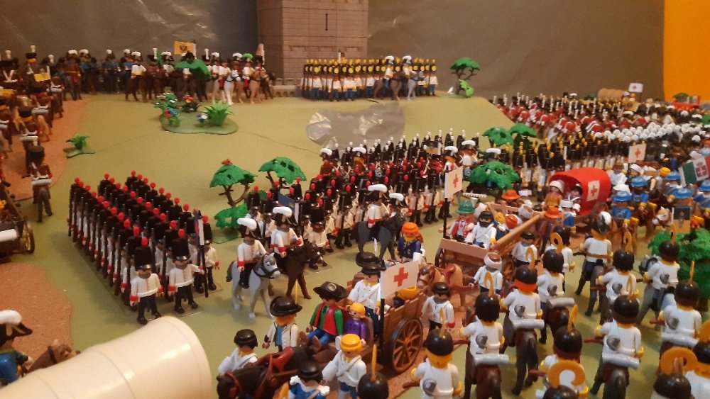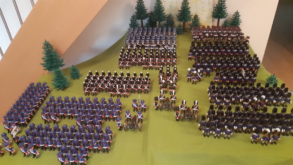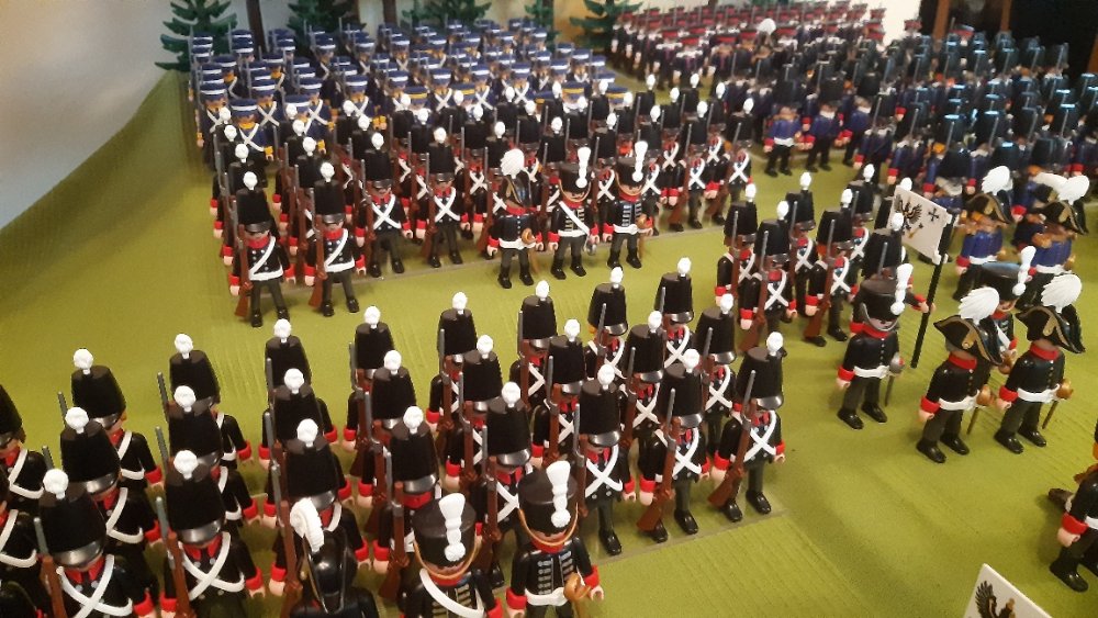 Kavallerie links und 2 Kavallerie Einheiten auf der rechten, leider ohne Pferde. Dahinter Einheiten aus Württemberg.