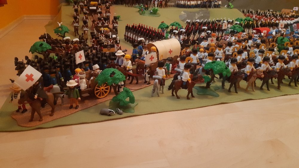 Kavallerie links und 2 Kavallerie Einheiten auf der rechten, leider ohne Pferde. Dahinter Einheiten aus Württemberg.